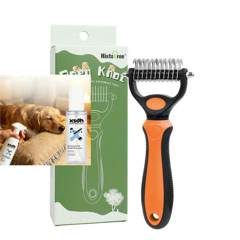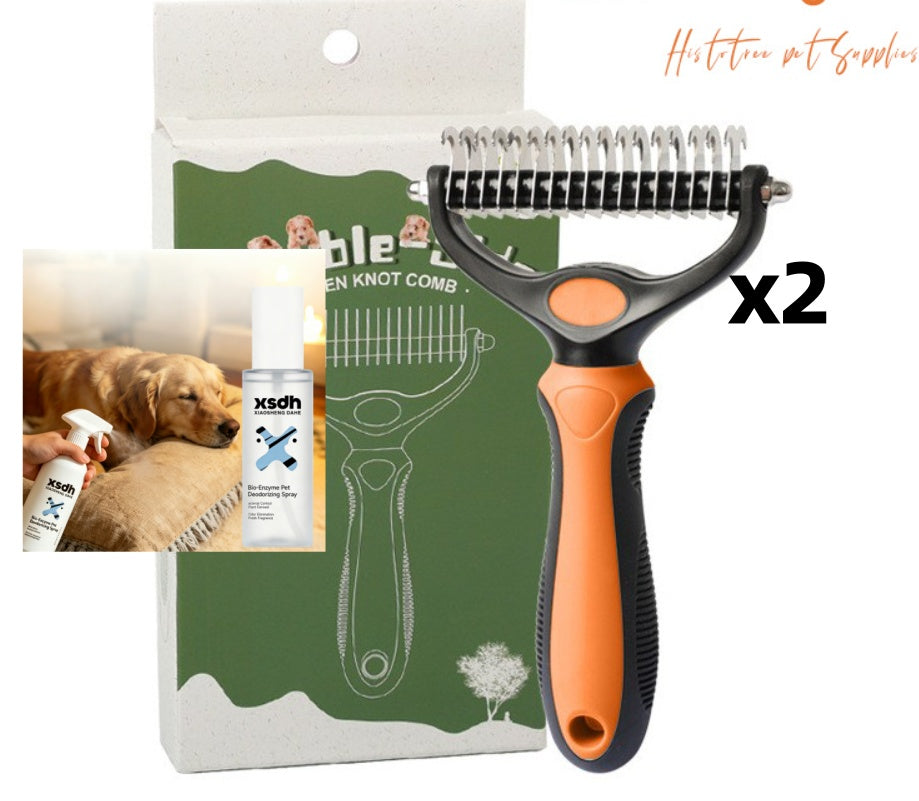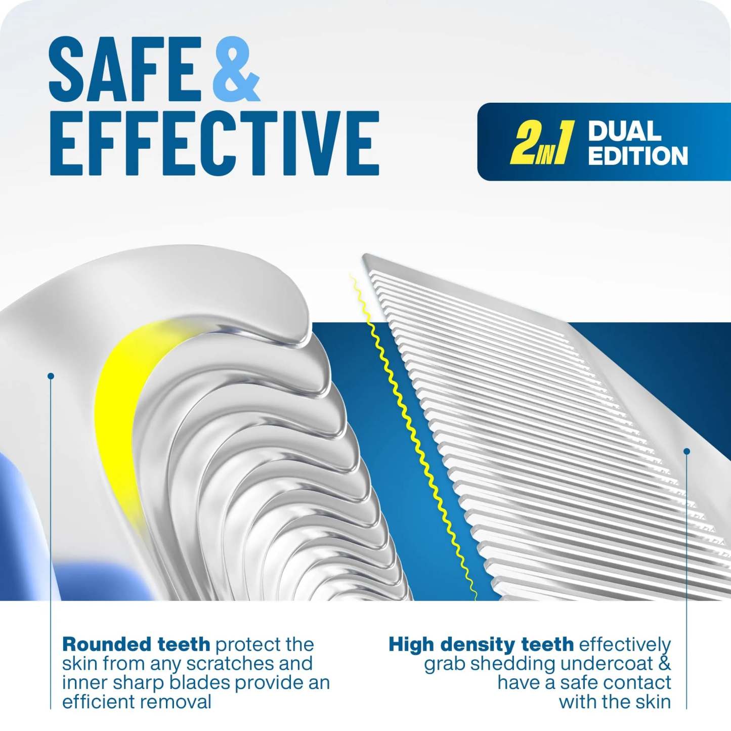 Double Sided Head-2 in 1 cat brush combine with dematting comb and deshedding tool, buy one pet brush and you will get both function. Professional pet grooming tool effectively reduces dead hair up to 95%