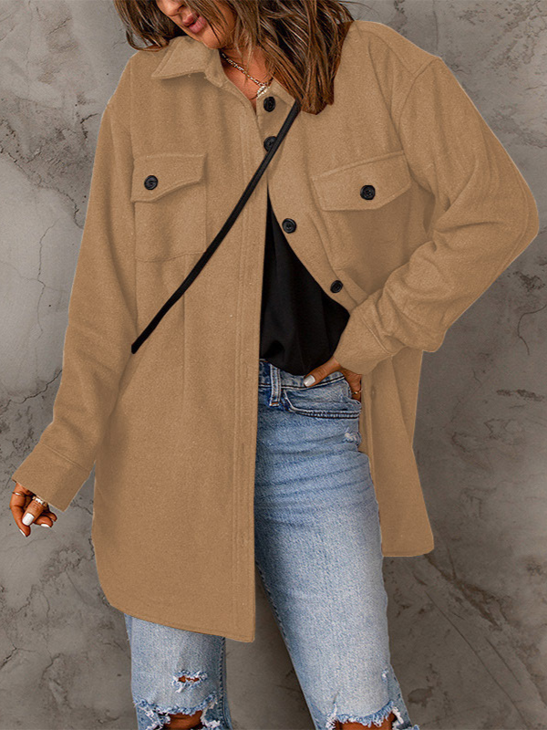 Women's Jacket Coat Solid Color Single Breasted Casual Lapel Wool Jacket
