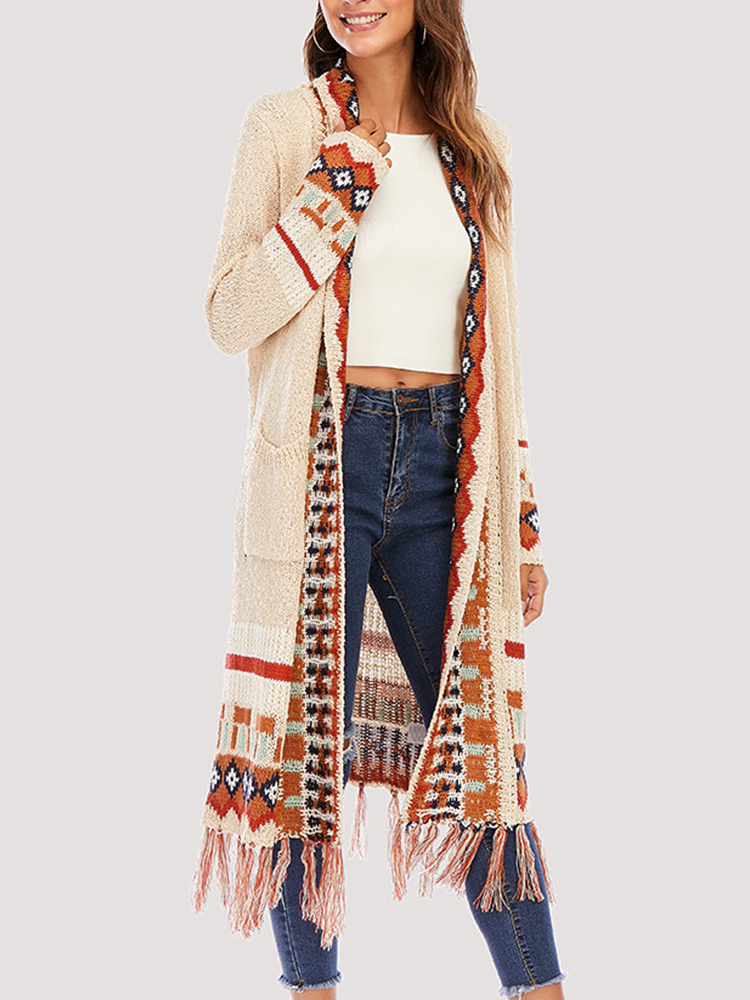 Women coat long cardigan knitted coat romantic tassels style fashion tribal shawl neck duster cardigan coat