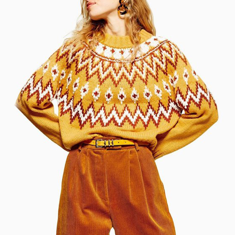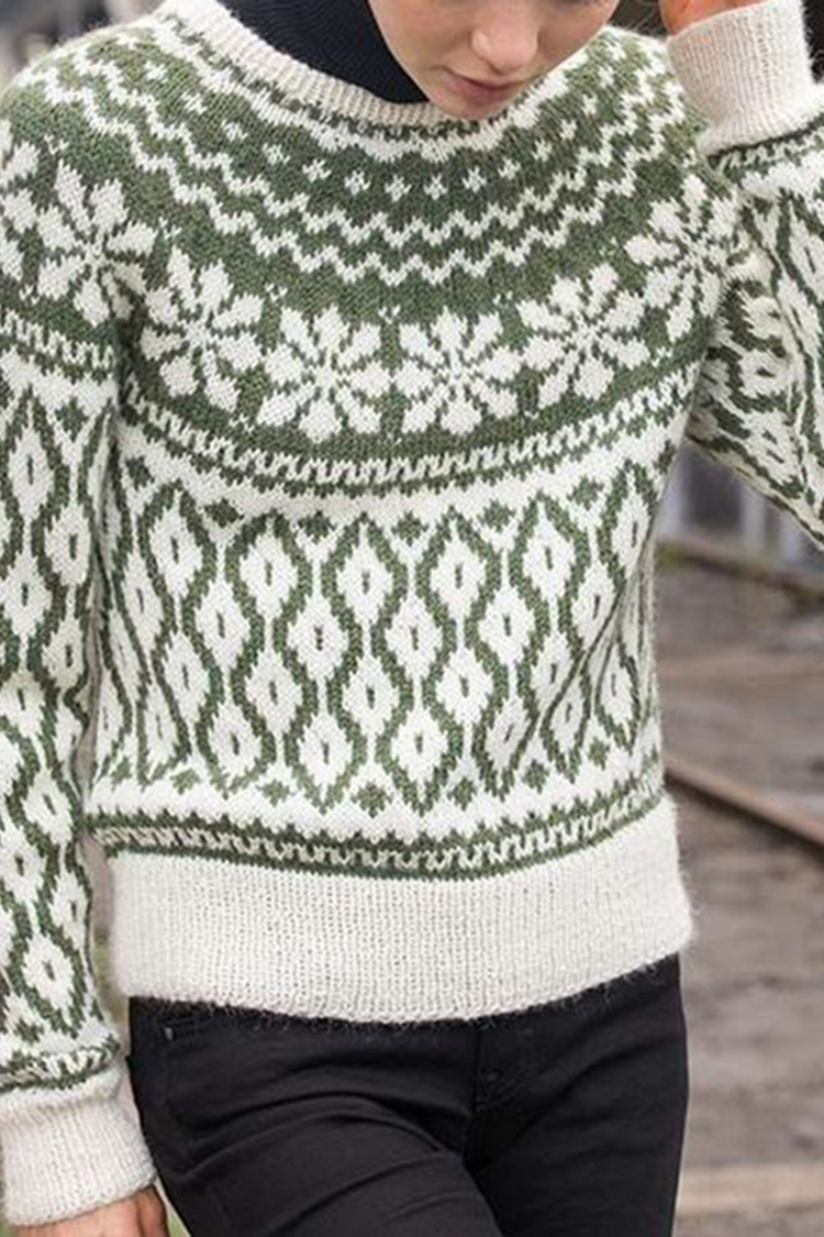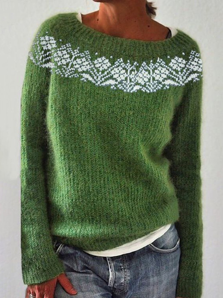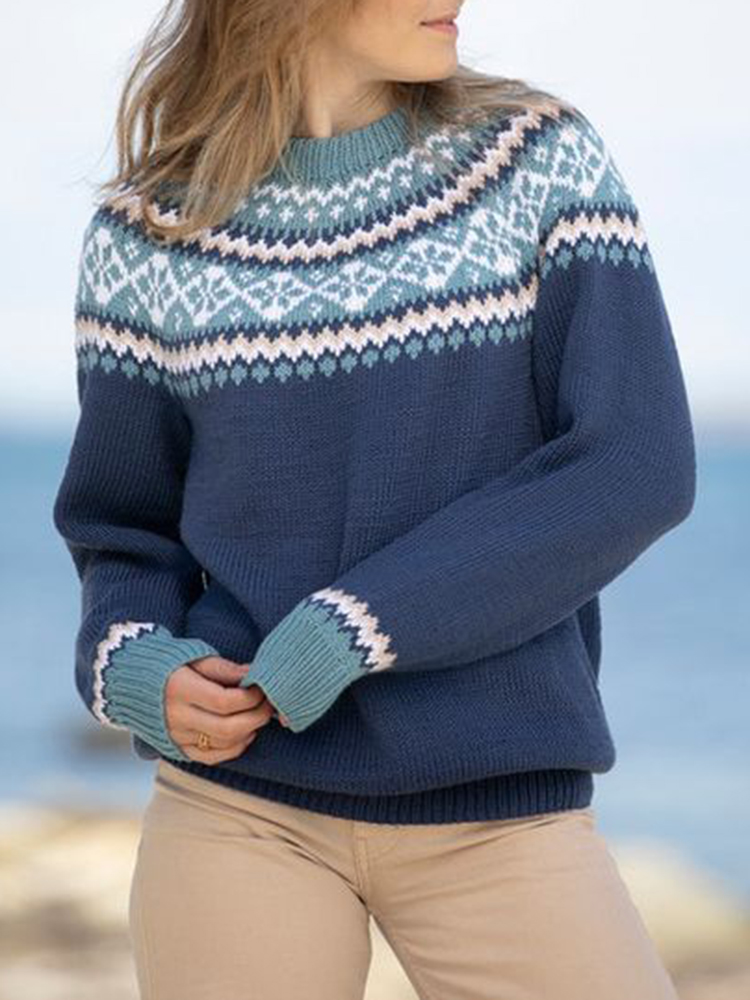Fair Isle Knit Jacquard Long Sleeve Vintage Sweater
