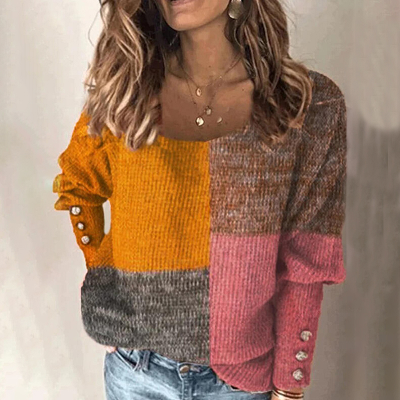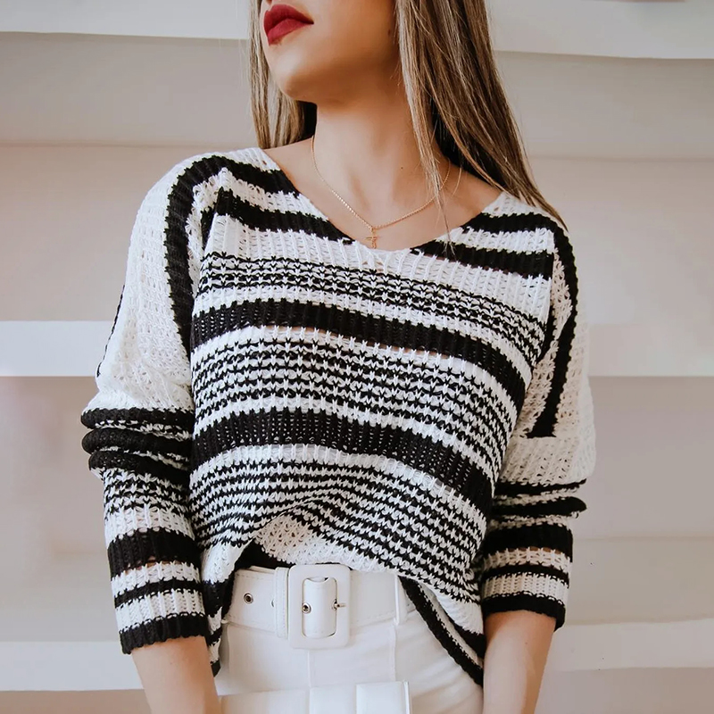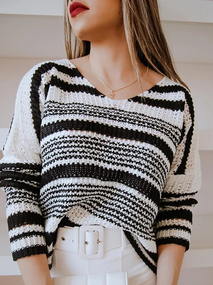 Irregular Stripe Colorblock Crewneck Long Sleeve Sweater