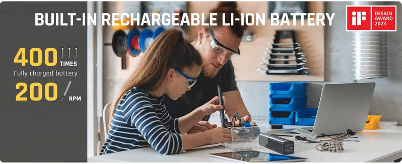 🔋 Powerful Battery & Motor: Built with a long-lasting, rechargeable battery, this tool can operate up to 400 screws on a full charge! The convenient USB Type-C charging port simplifies your charging experience, while the robust motor operates at a maximum speed of 200 RPM for efficient work.