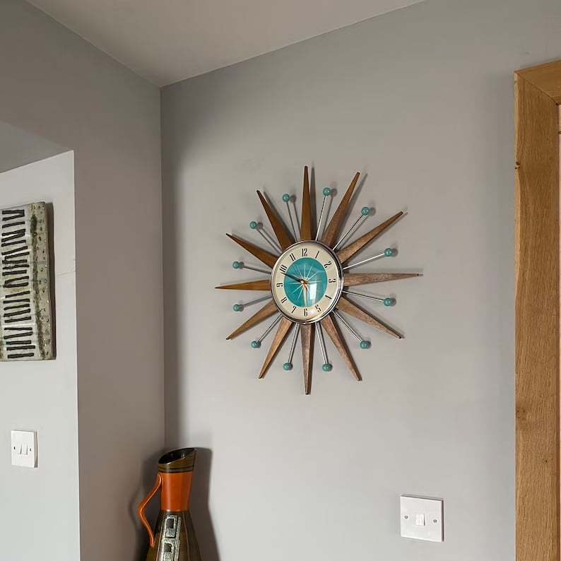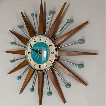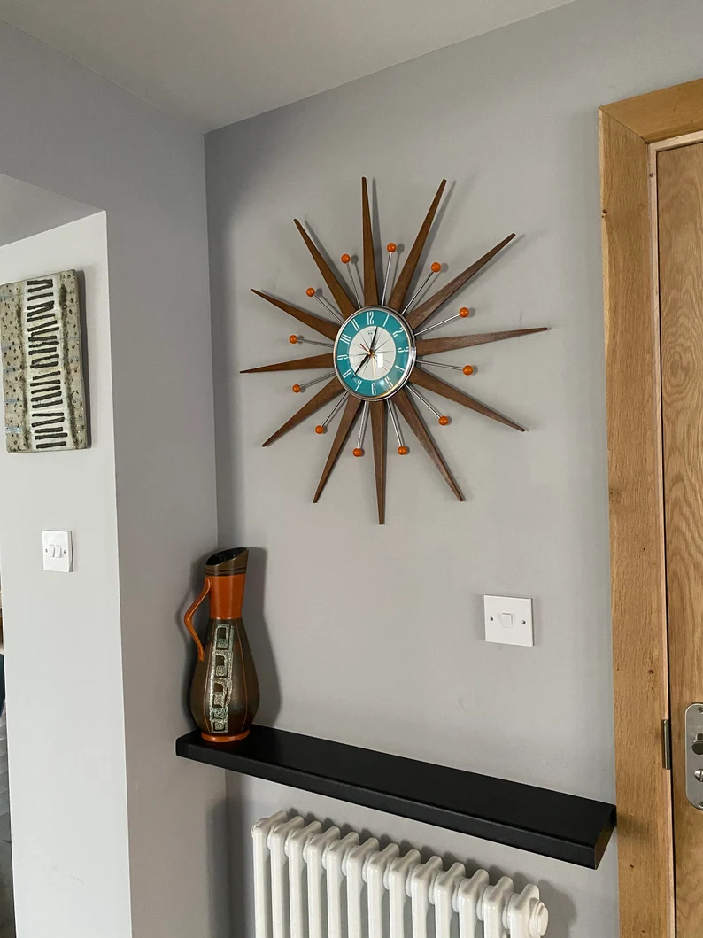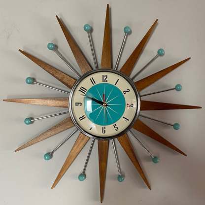 Starburst Wall Clock-SIZE 19: Overall diameter 19″ (48cms) Deep 1 1/2″ (4cms) Face 7″ (18cms)
