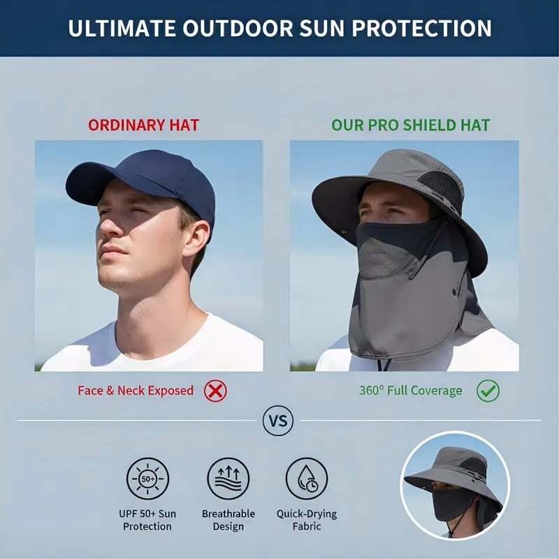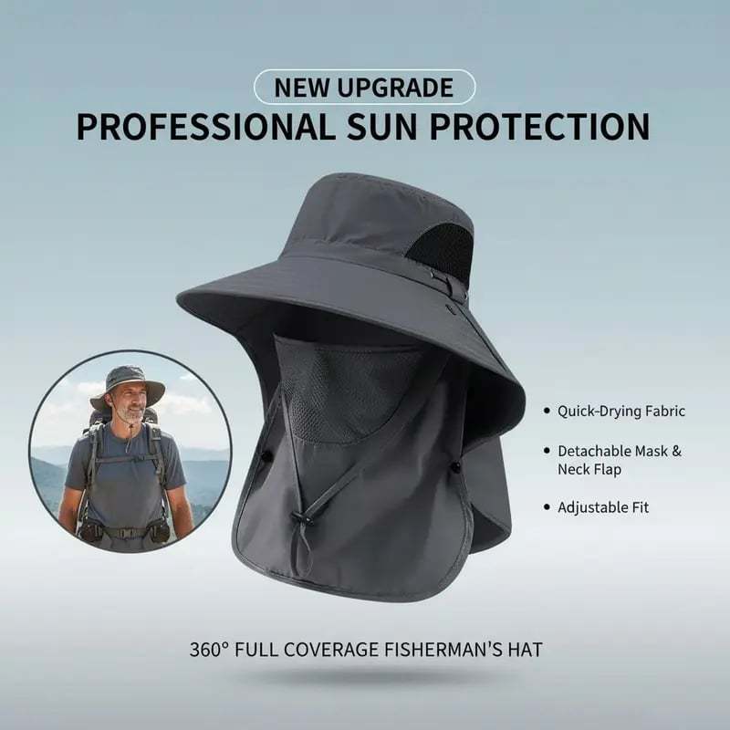 ☀️ Full Coverage Sun Shield Hat – Removable Face & Neck Protection Outdoor Fishing Cap 🎣