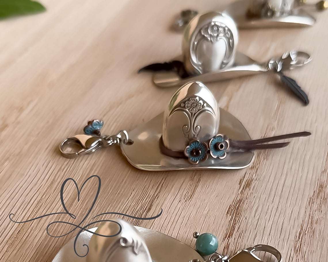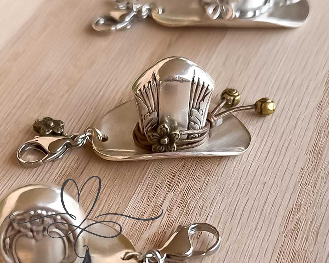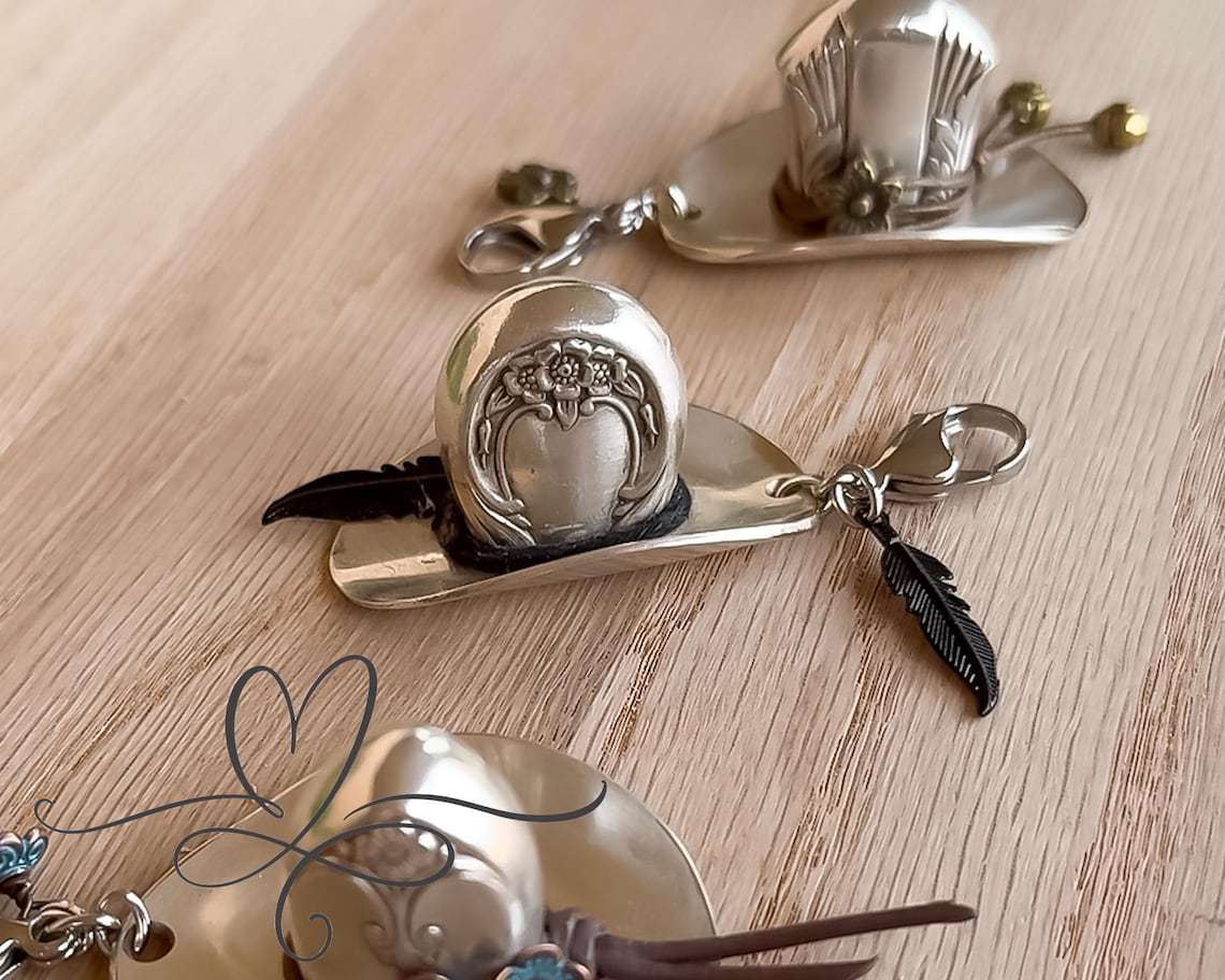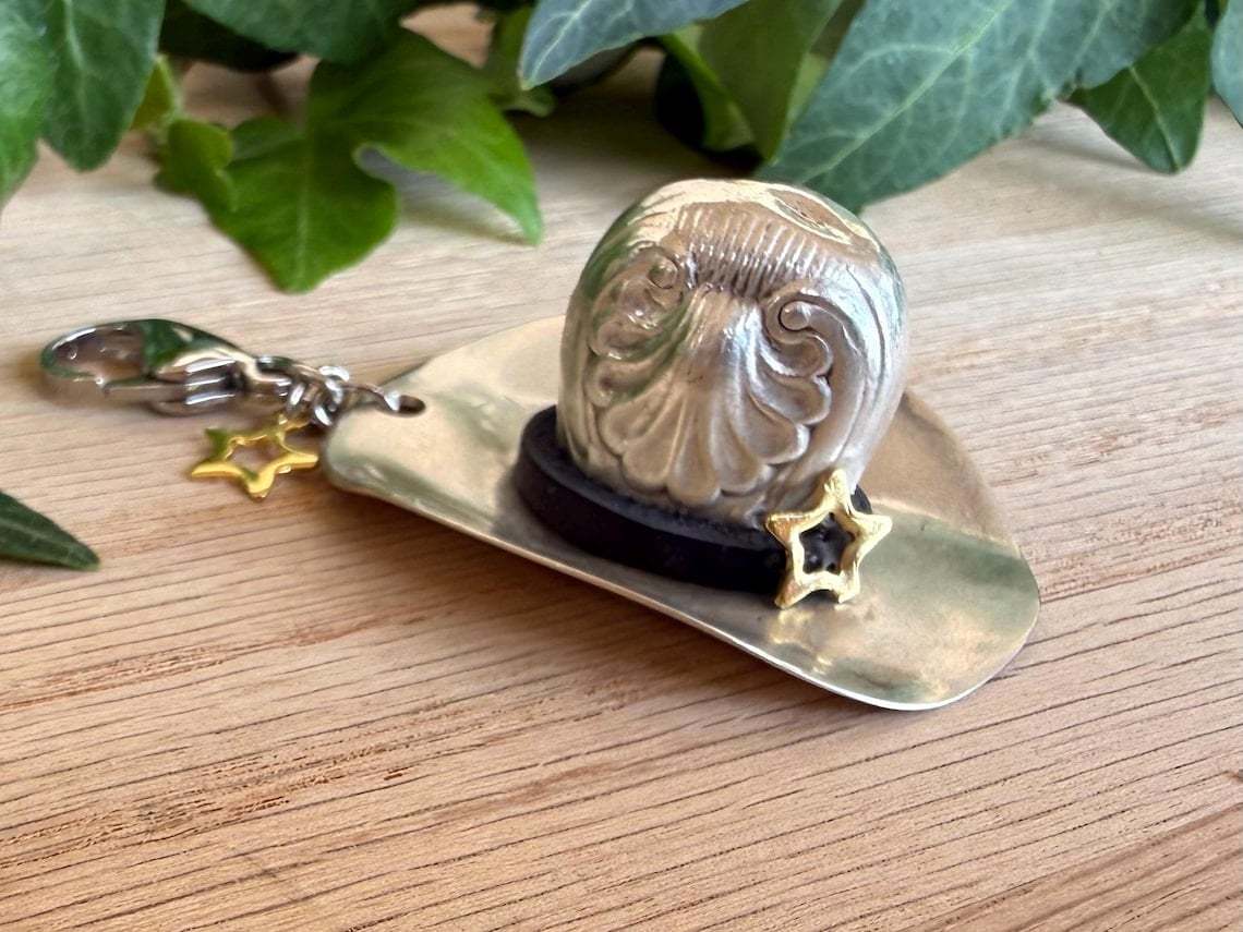 This whimsical cowboy hat pendant is handcrafted from genuine vintage alloy, combining rustic Western spirit with timeless elegance. Once part of a well-loved silver plate set, each hat carries a story of craftsmanship and heritage, now reborn as a stylish accessory to celebrate adventure and nostalgia. 🤠✨