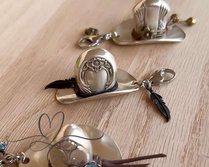 I carefully shape and polish each pendant by hand to highlight the intricate details and natural sheen of the silver, ensuring every cowboy hat is both charming and durable.