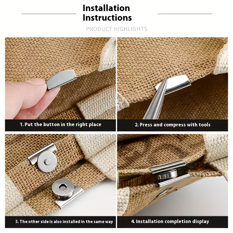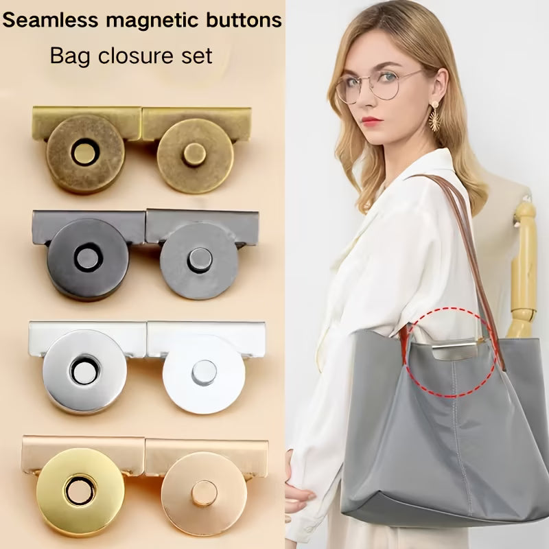 Metal Magnetic Snap Button, Bag Clamp Closure Buckle—Magnetic Fastener for Bags, Clothes & Luggage, No-Sew Removable Connector