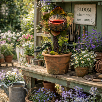 A playful statement piece that brings bold personality, storybook charm, and eye-catching garden character to spring flower beds, patios, porches, and creative outdoor corners.Turn an ordinary garden corner into a conversation piece with this whimsical carnivorous plant planter décor. Inspired by the look of a fantasy garden creature, this unique design adds instant personality to your outdoor space while still feeling artistic, playful, and surprisingly charming.