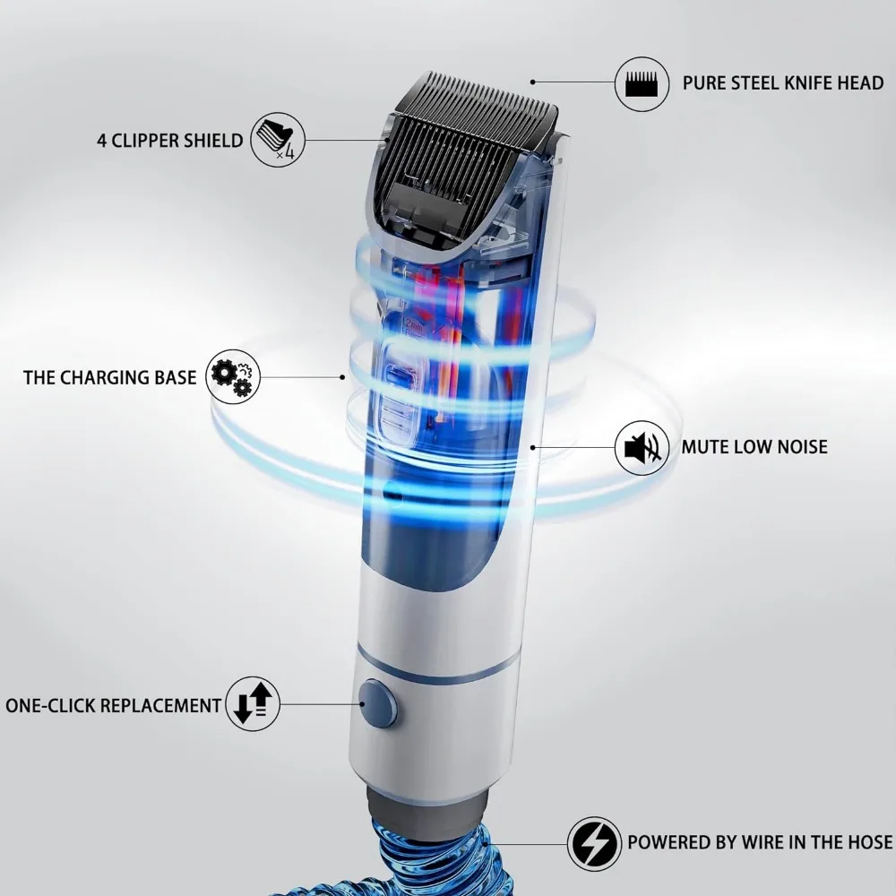 • 【5 in 1 Pet Grooming Kit】➖ Multiple, easy to use attachments, including a slicker brush, a comb, clippers and guards, a fabric brush, and a hose. The electrical cord is nice and long, hose itself is a decent length, clippers are powered by wire in the hose, brilliant.