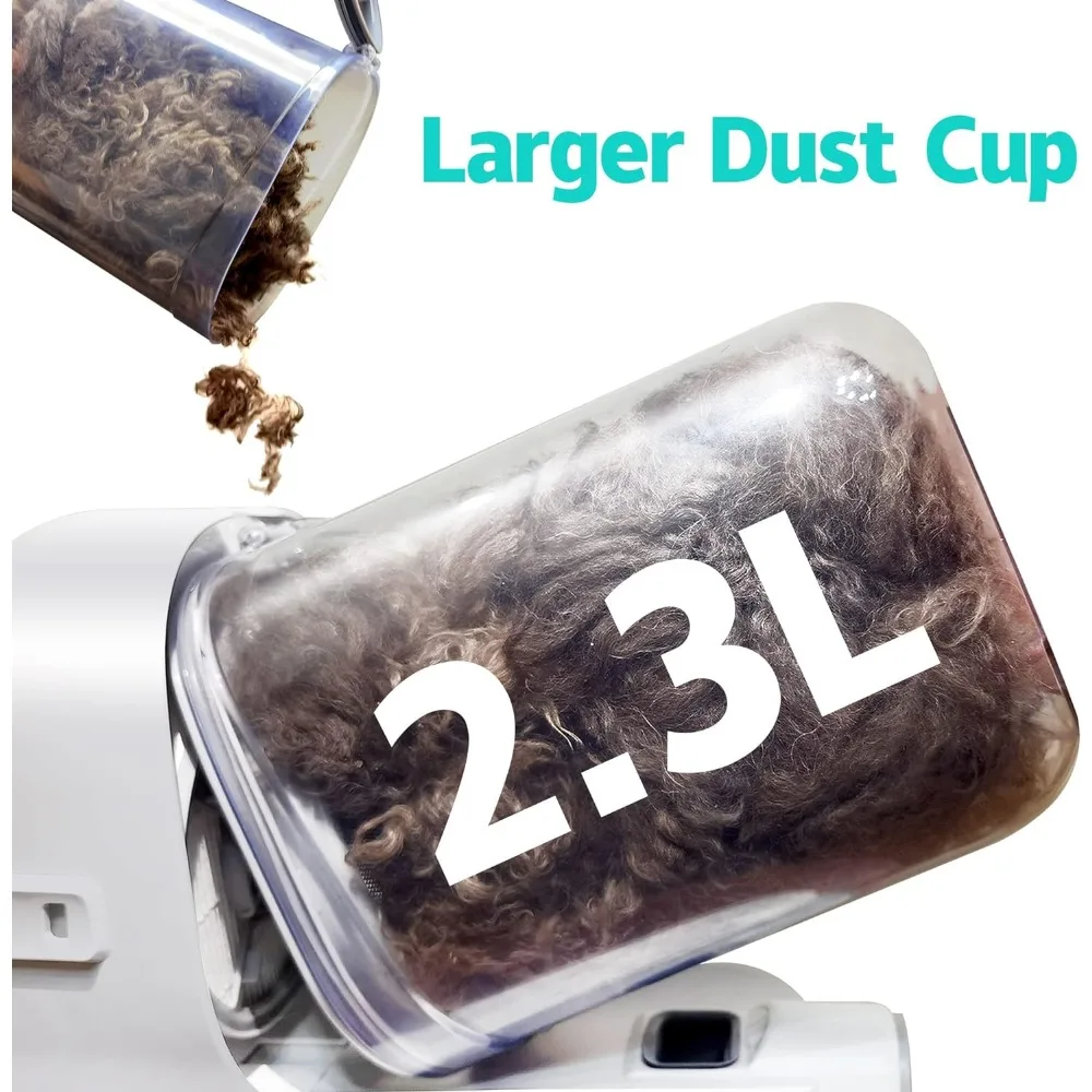 • 【2.3L Larger Dust Cup】➖ The larger jar storage capacity can reduce the number of times you dump your pet hair. This is fantastic because you can brush her inside without fur flying everywhere, instead it goes directly in the canister. It is also very simple to disassemble and clean.