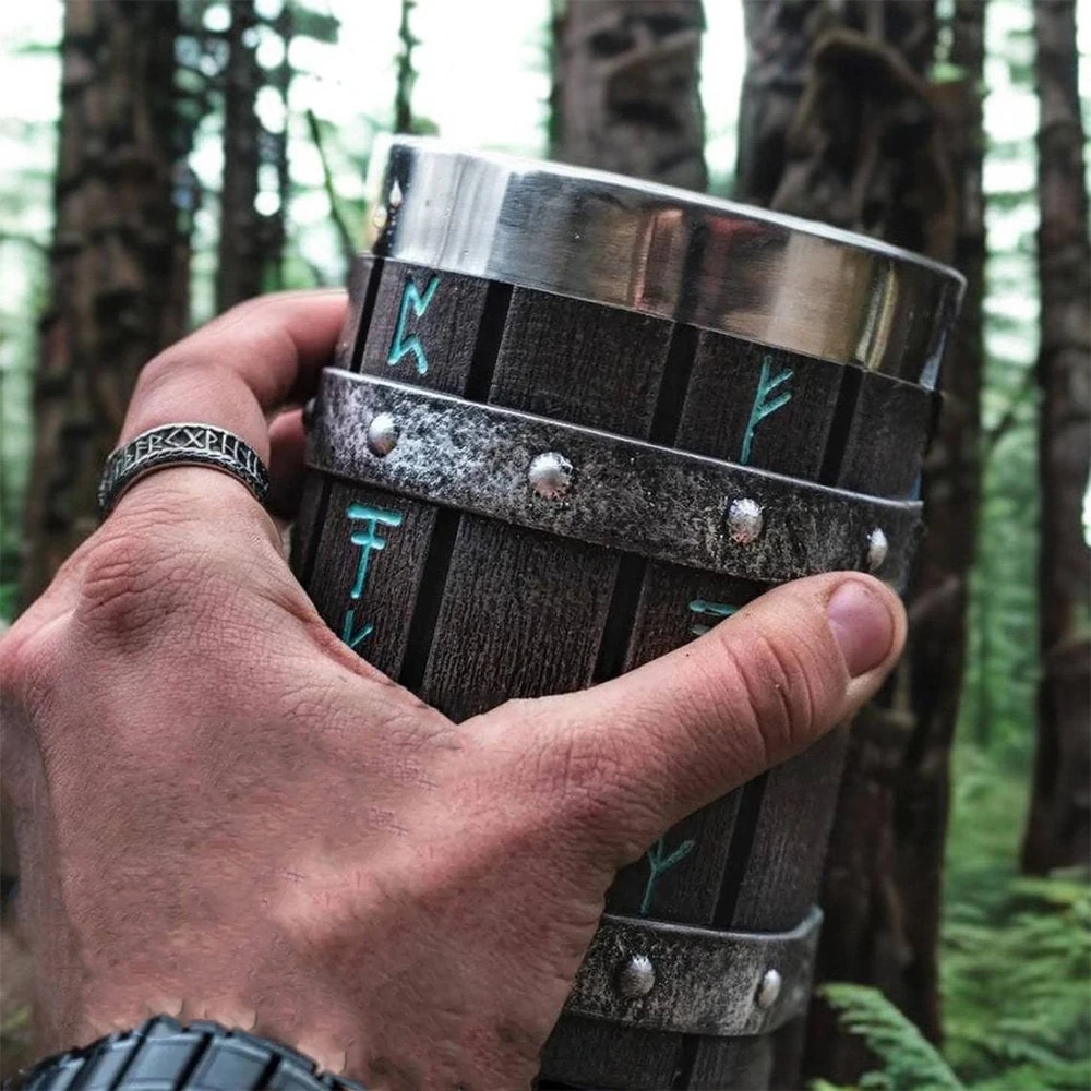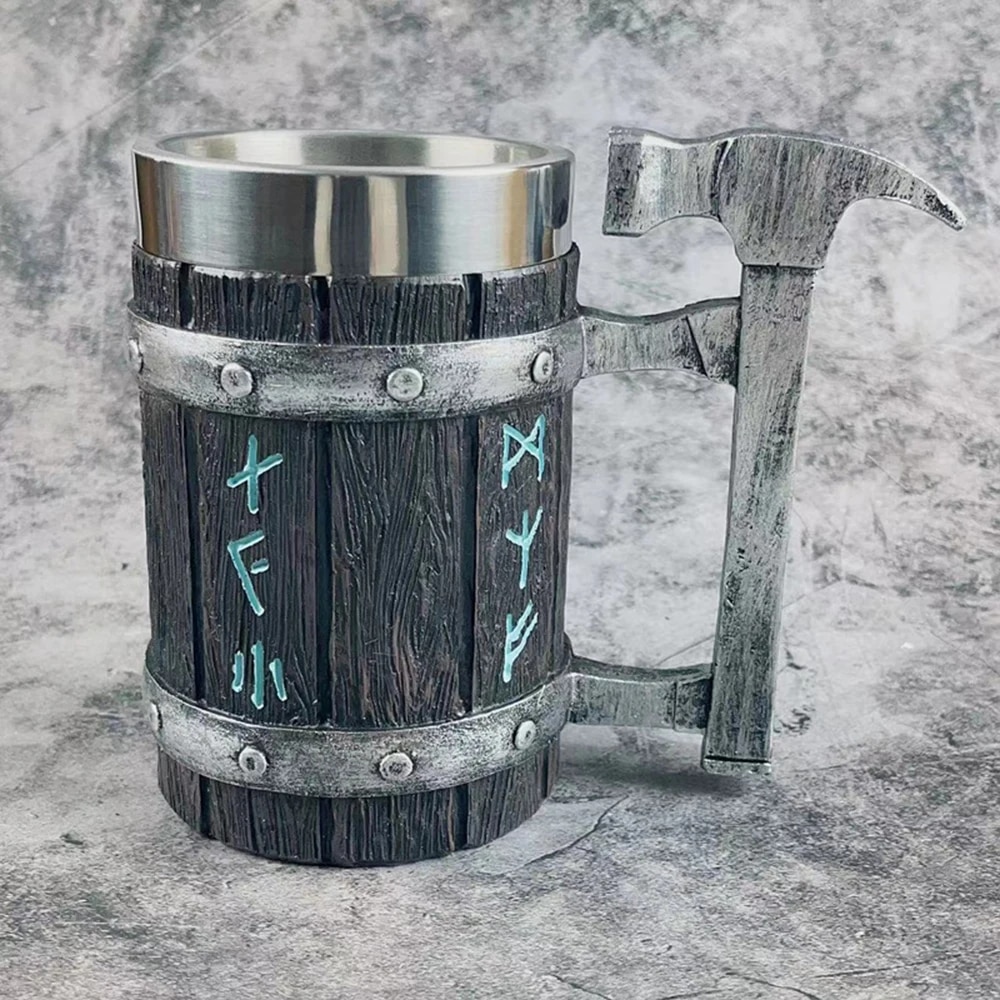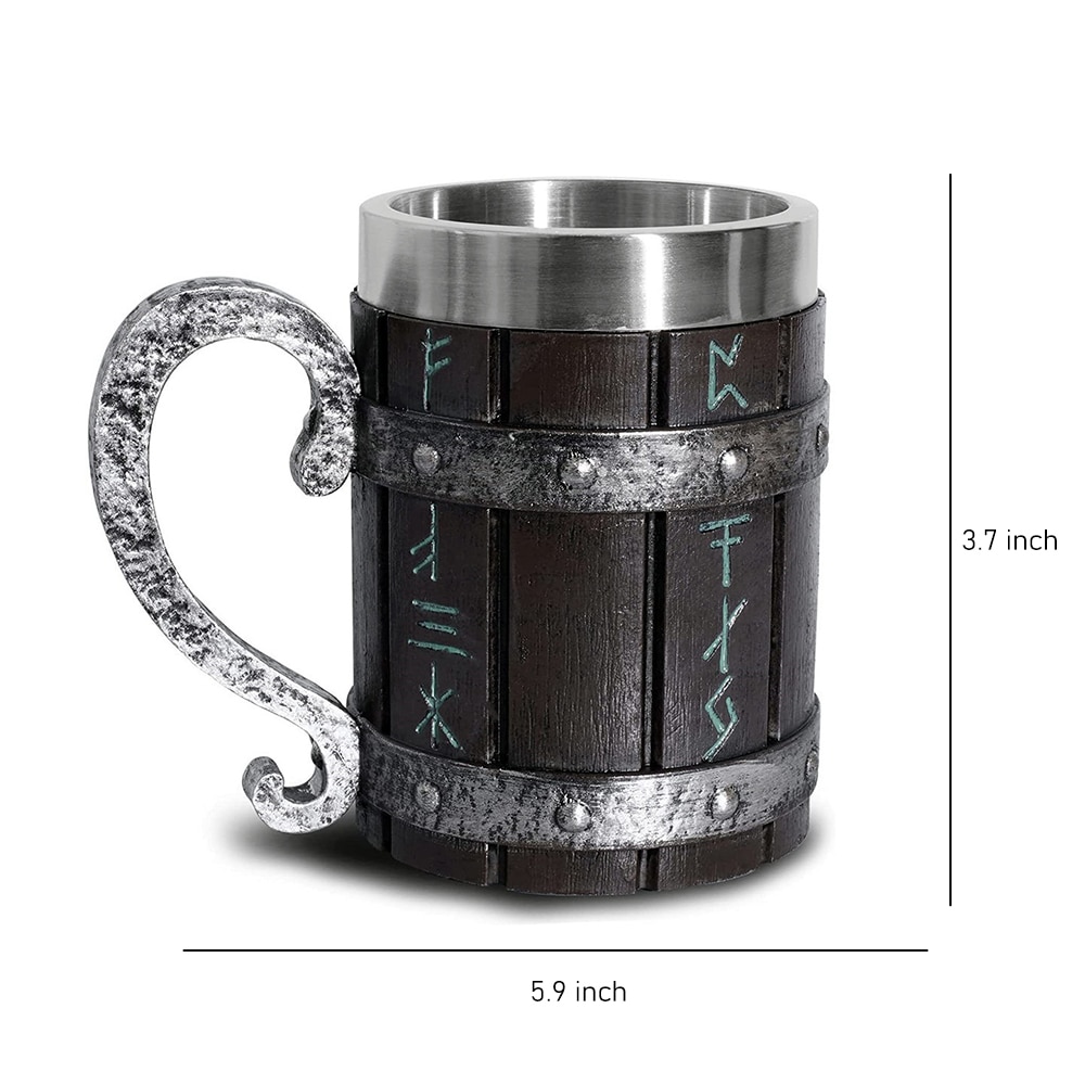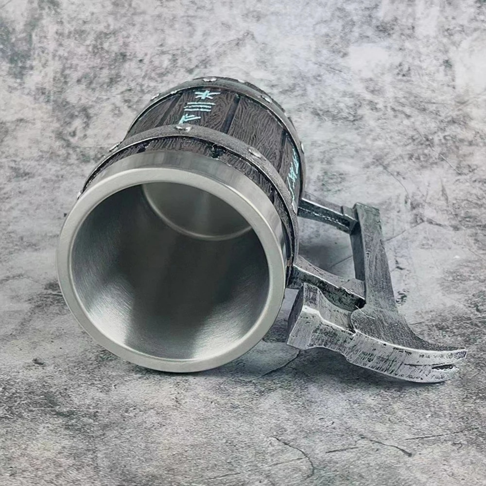 Viking Vintage Oak Barrel Beer Mug Stein with Stainless Steel Liner Coffee Cup Tea Mug Large Capacity Mug