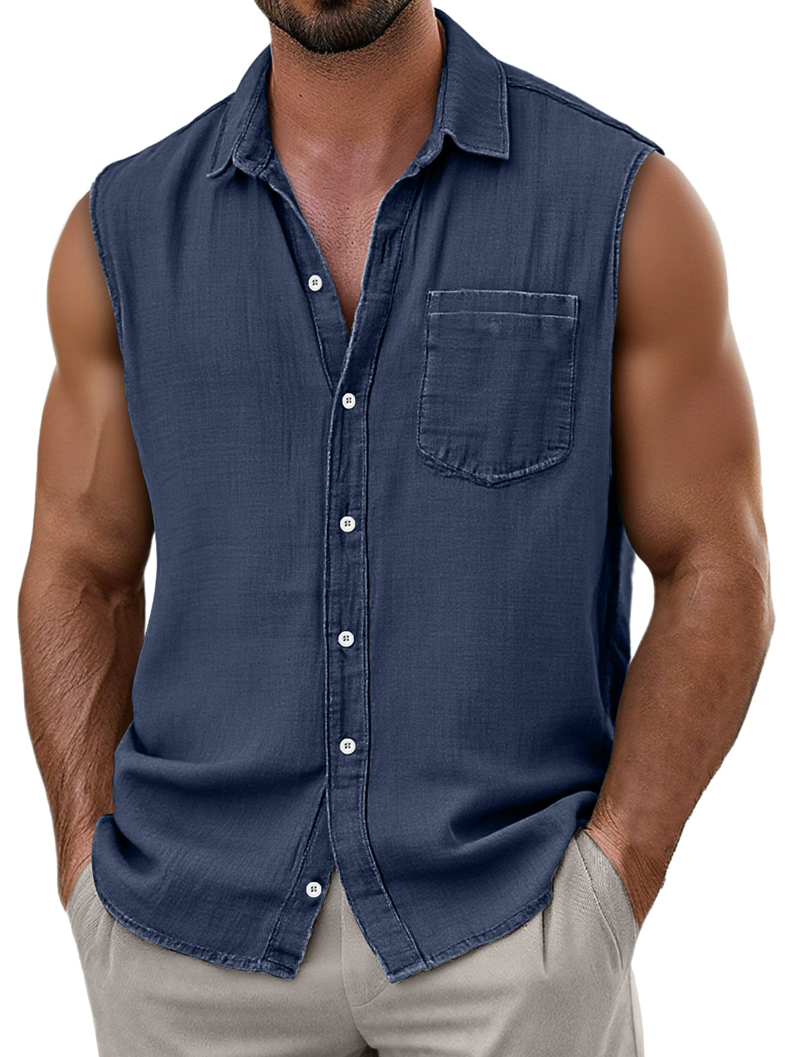 Men's Daily Faux Linen Casual Pocket Comfort Sleeveless Shirt