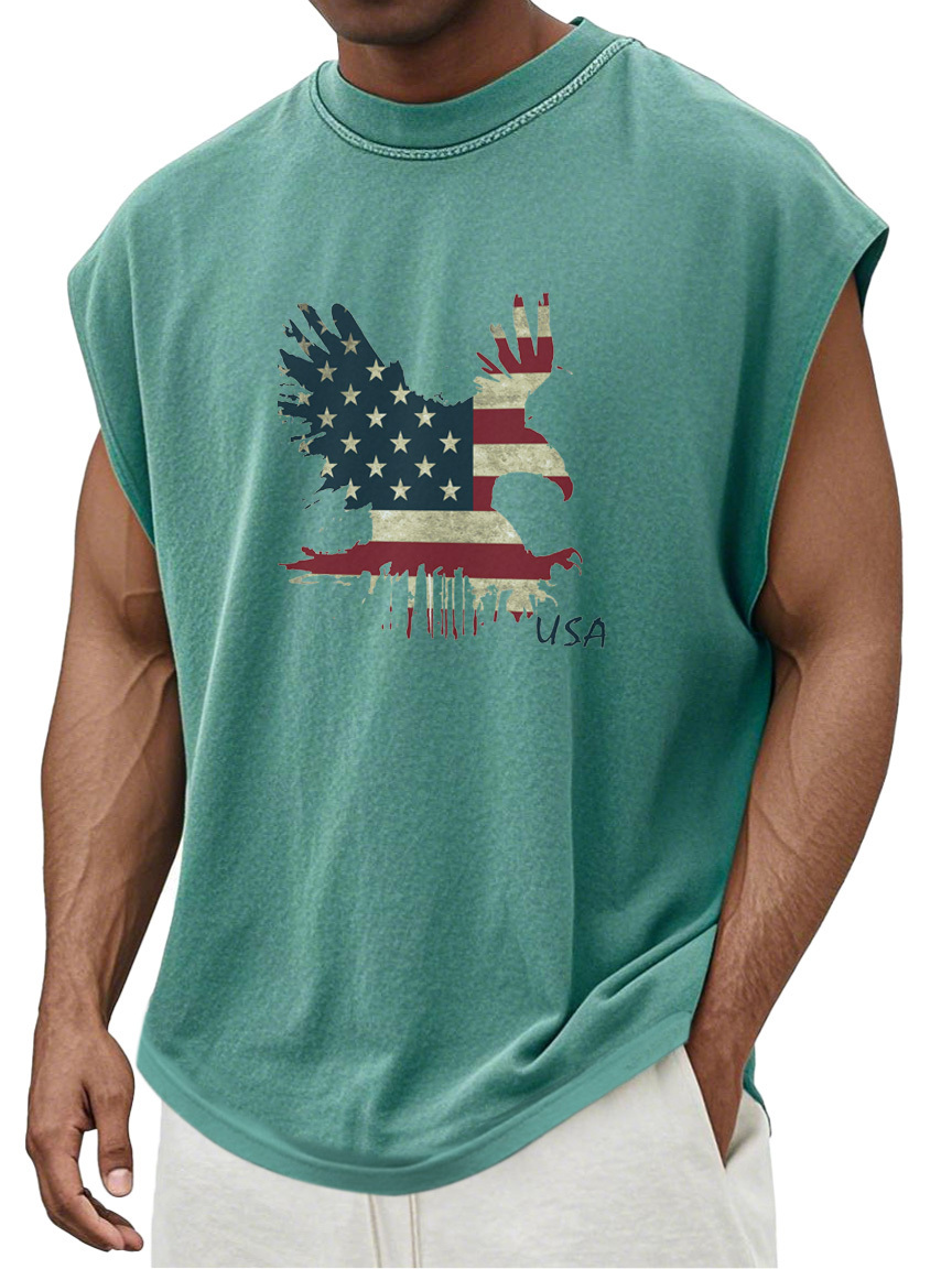 Men's Everyday Independence Day Eagle Print Loose Crew Neck Tank Top