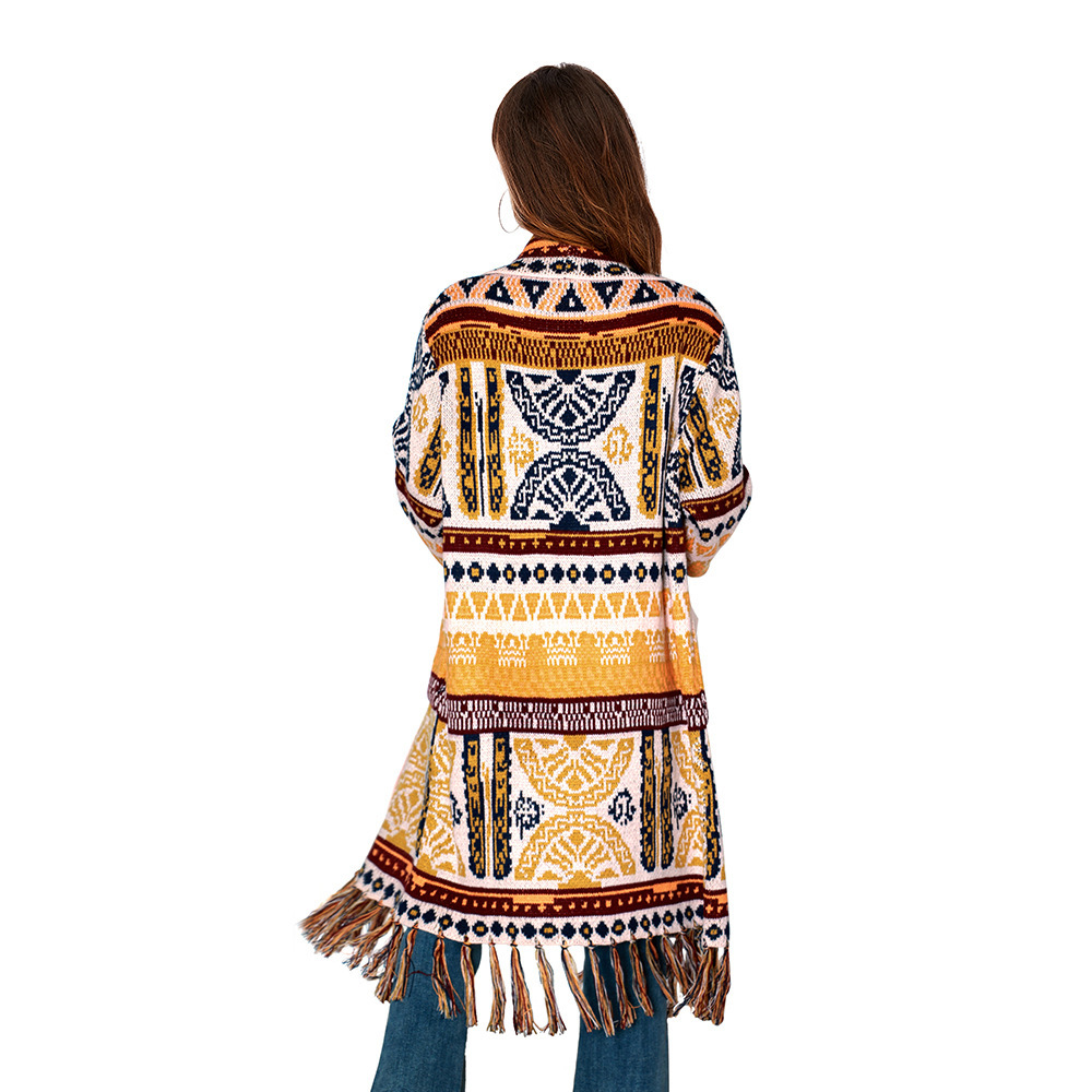 Cowgirl Style Tassel Cardigan Sweater Knitted Jacket Loose Long-Sleeved Bohemian Style