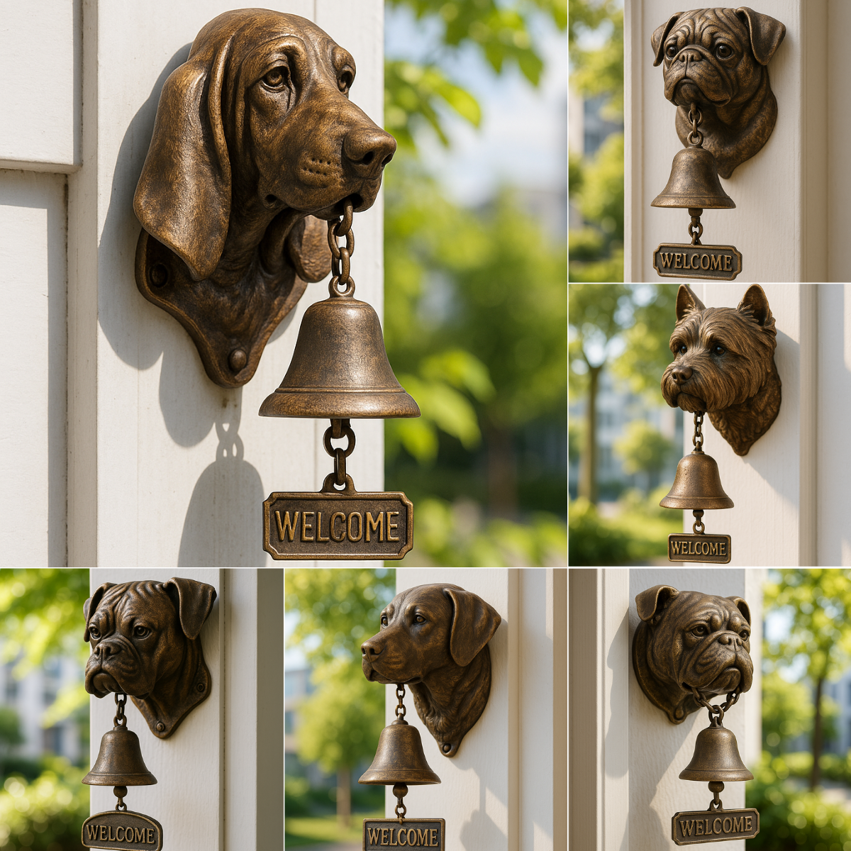 This welcome bell features the beloved West Highland White Terrier with its classic rounded face, alert ears, and warm gaze—captured in a rich antique bronze finish that adds warmth to any entrance.
