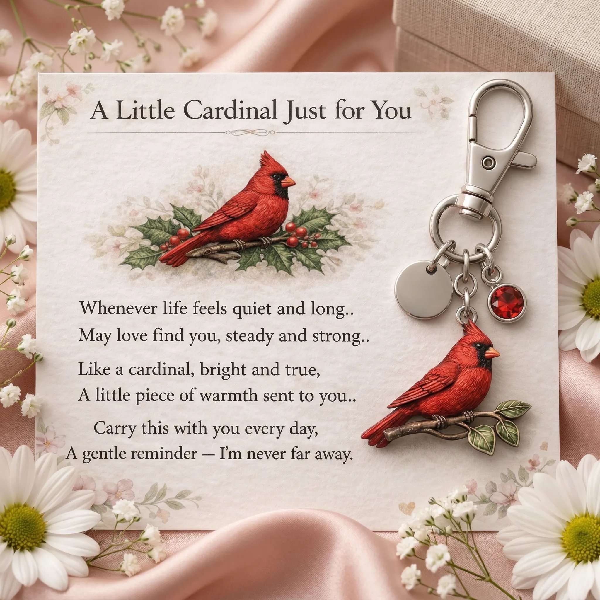 🔥A Little Cardinal for You Keychain with Hand-Painted Watercolor Encouragement Card👼🎁