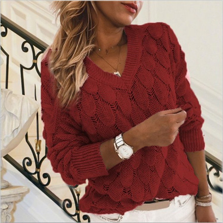 Feather Cutout V-Neck Long Sleeve Sweater