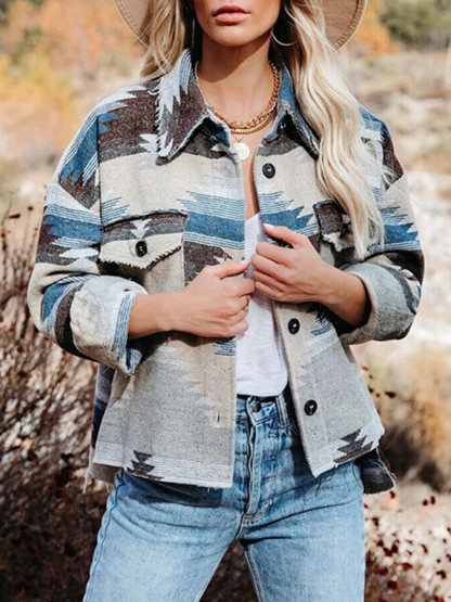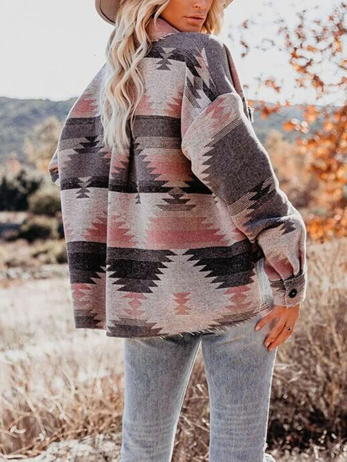 Women's AZTEC retro ethnic geometric print woolen loose coat.