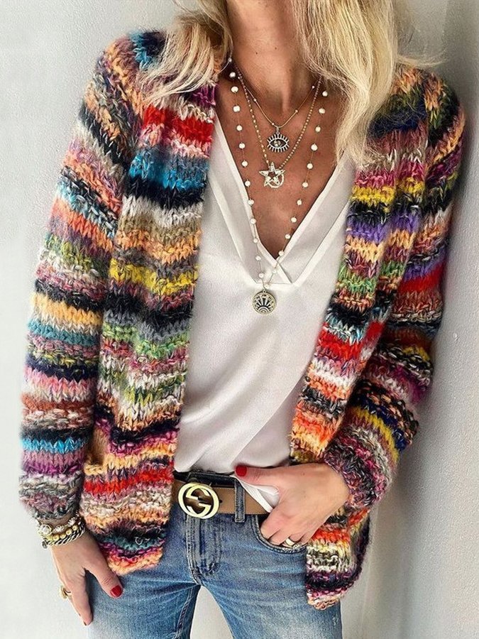 Women's colorful knitted sweater cardigan
