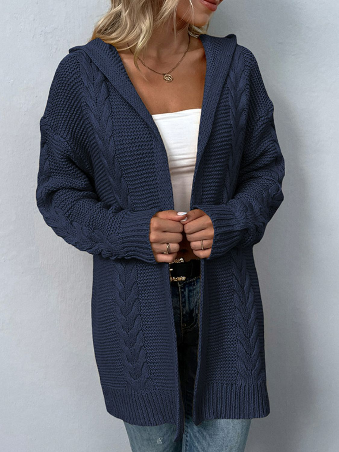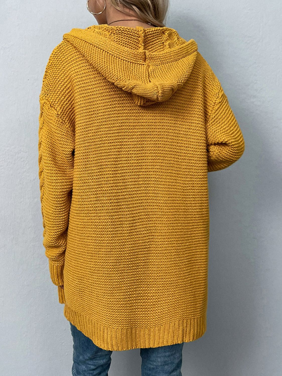 Women's Sweater Cardigan Cable-Knit Longline Hooded Cardigan