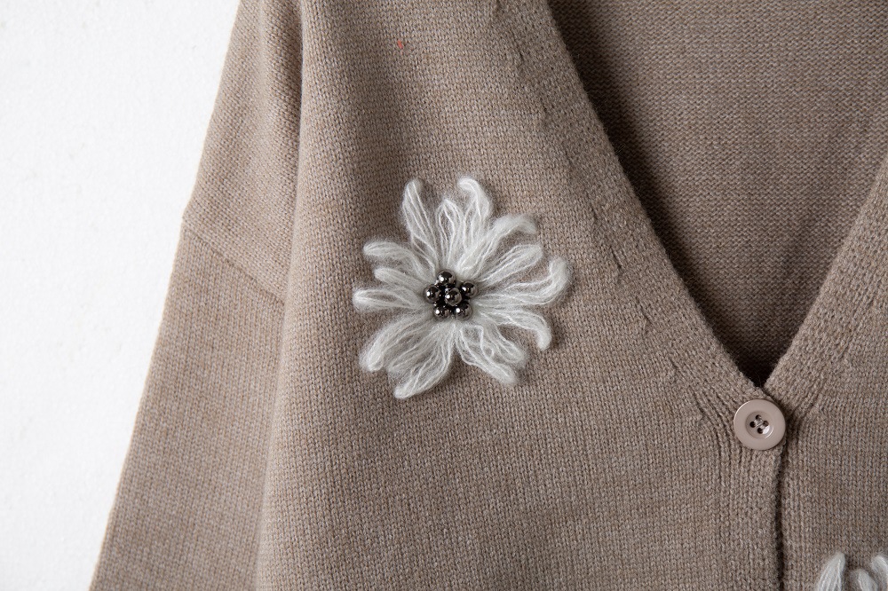 Women's Sweater Embroidered Pattern Single Breasted Knit Cardigan Sweater