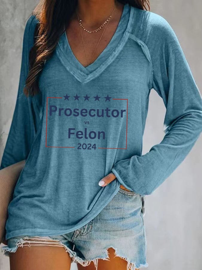 Women's Prosecutor vs. Felon Printed V-Neck Long Sleeve T-Shirt