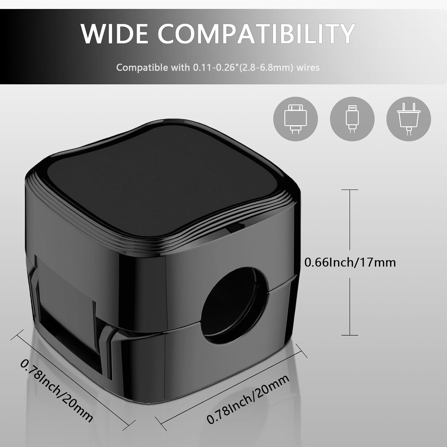 Diameter of 0.27in(7mm) allows to hold diameter less than 0.27in, such as phone charging cables,USB cords,HDMI thick cables, computer power cords and etc.