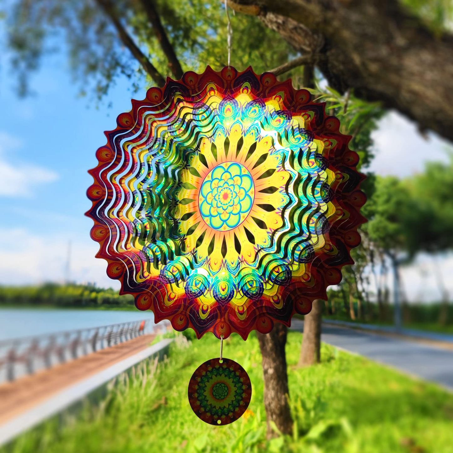 • Stunning Three-Dimensional Effect: The wind spinner is laser-cut from high-quality, durable stainless steel, and has a mirror reflection design. It creates a pulsing, magical, and three-dimensional effect that will mesmerize you. Depending on the environment and light, it can take on different colors, making it a beautiful and unique addition to any indoor or outdoor space.