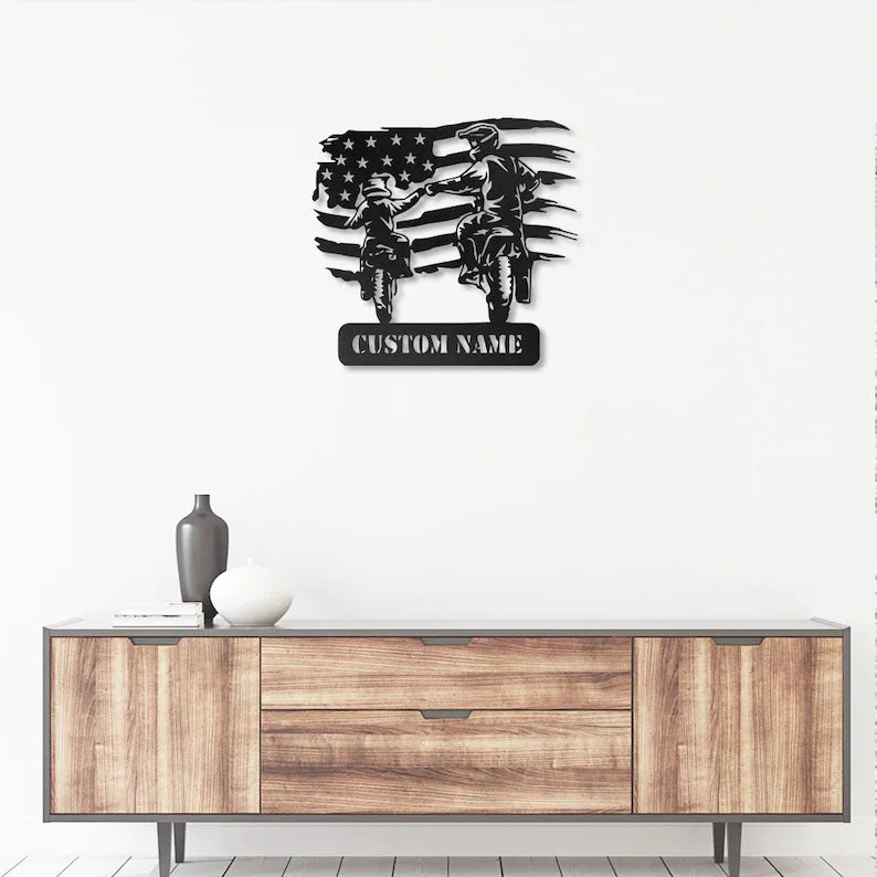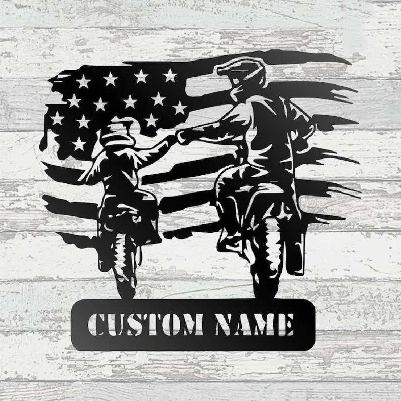 Custom American Motocross Dad and Son Metal Wall Art With Led Lights
