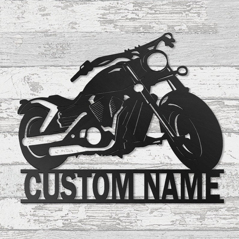 This custom motorcycle metal wall art is the perfect addition to any motorcycle enthusiast's home. It features a metal sign with a motorcycle that glows blue in the dark. Whether it's a festive holiday home decoration or a thoughtful gift, this glowing metal art is sure to make an impression.