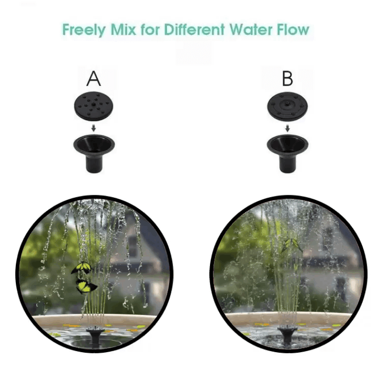 ✔【4 Spray Nozzles】:You can form 4-7 different nozzles by combining kits,The different fountain heads all provided pleasing patterns with the little water jets. The height can be adjusted by replacing the nozzles to avoid splashing out of the basin.  (2025 upgraded version of 7 different nozzles)