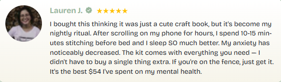 This isn't the disappointing "5 minutes of deep breathing" result. This isn't surface-level distraction. This is flow-state focus. No racing thoughts. No doom-scrolling urges. No checking your phone every 30 seconds. Just smooth, meditative stitching that quiets your mind for hours — not minutes.