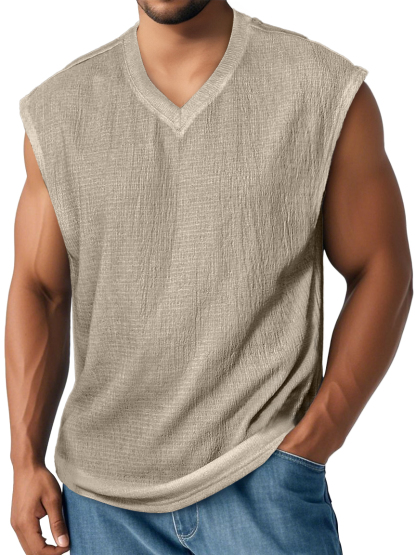Men's Daily V-neck Textured Casual Comfortable Sleeveless Vest