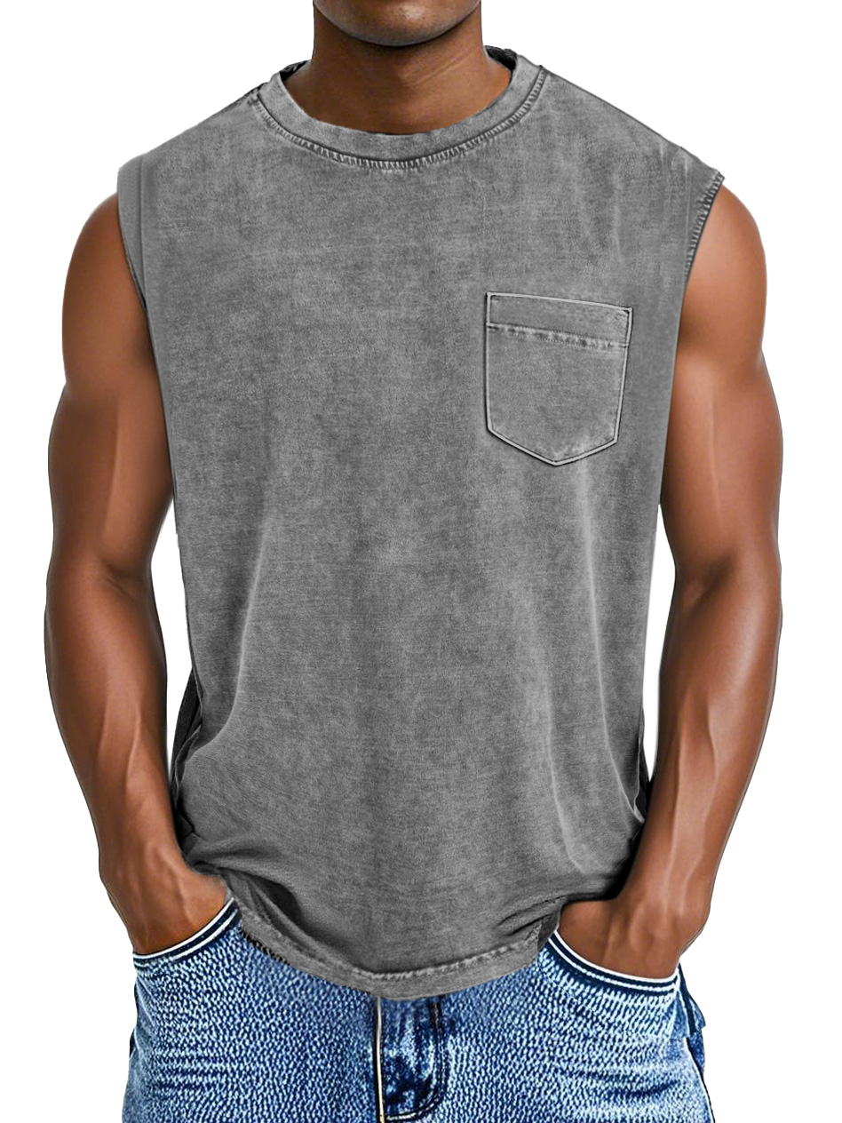 Men's Everyday Retro Casual Pocket Sleeveless T-shirt