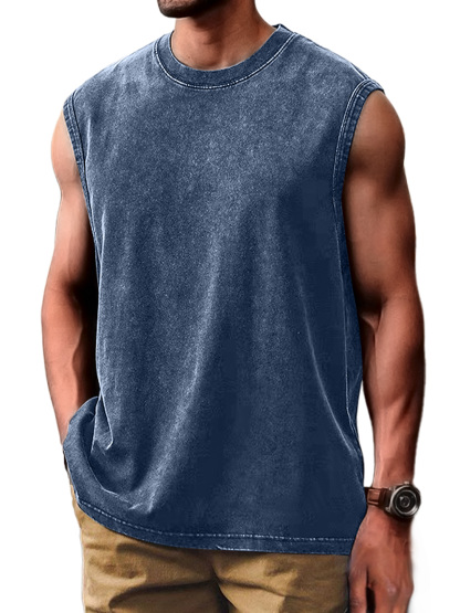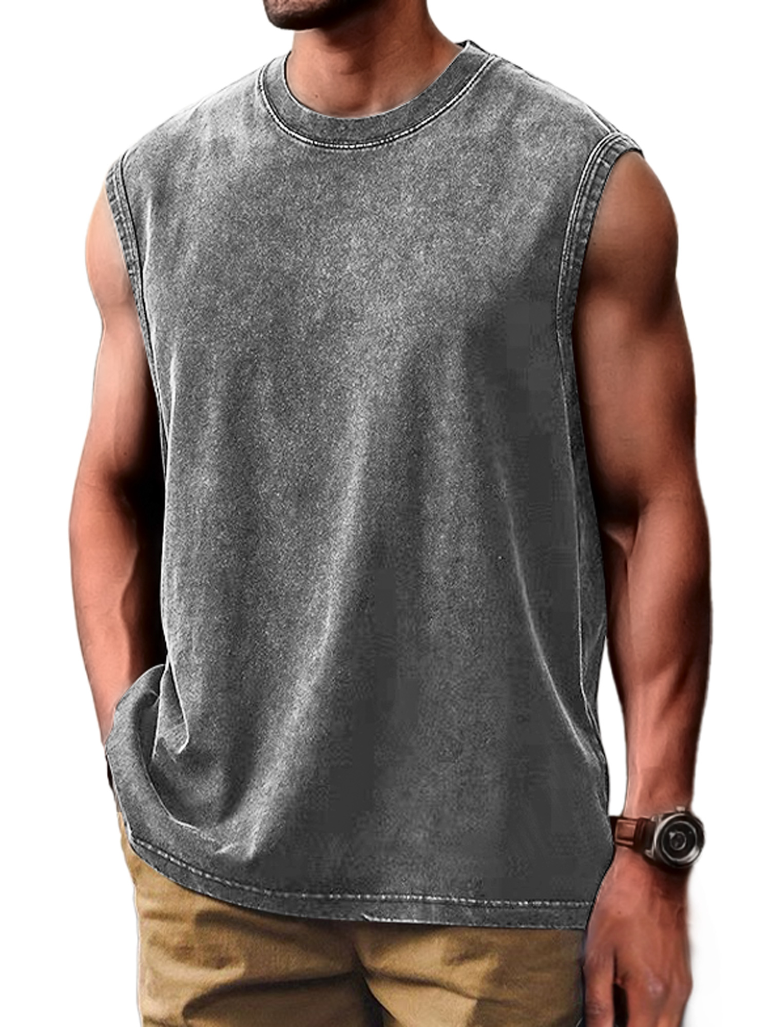 Men's Retro Distressed Fashion Round Neck Casual Solid Color Sleeveless Vest