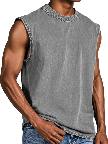 Men's Retro Solid Color Comfortable Crew Neck Vest