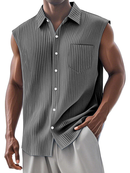 Men's Simple Daily Pit Strip Chest Pocket Lapel Sleeveless Shirt