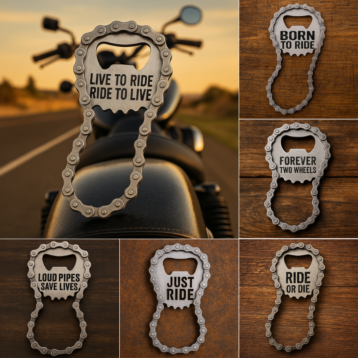 Crafted from real metal chain and designed for true road warriors, this bottle opener isn't just a tool – it's a statement. Engraved with the bold mantra “LIVE TO RIDE, RIDE TO LIVE”, it celebrates the freedom of the open road and the taste of a well-earned beer 🍻.