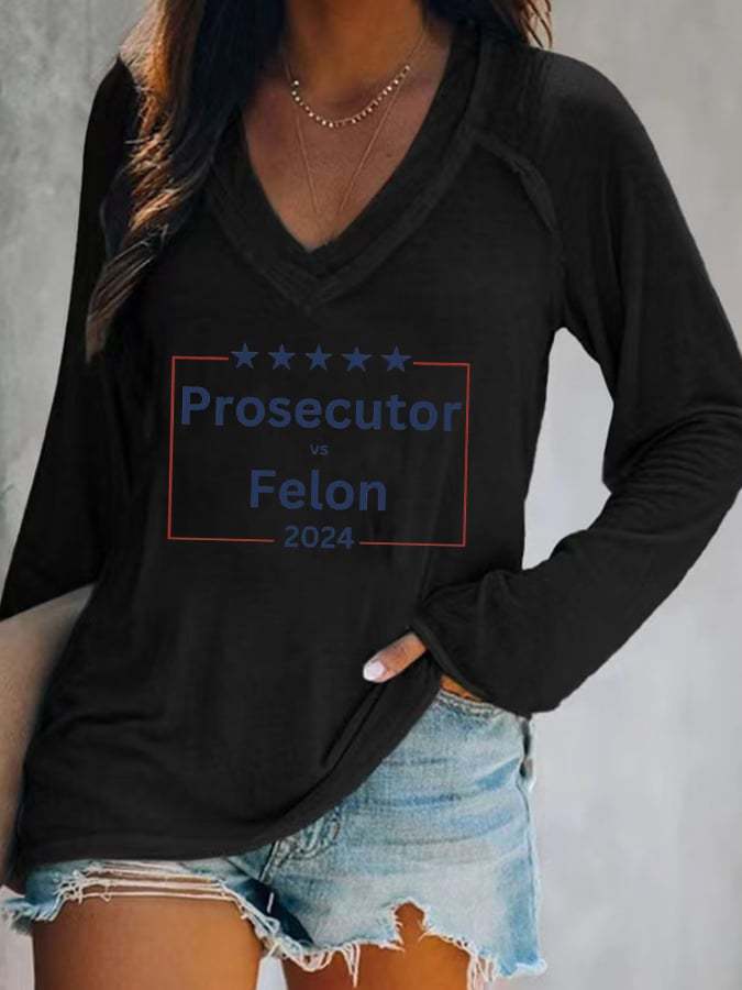 Women's Prosecutor vs. Felon Printed V-Neck Long Sleeve T-Shirt