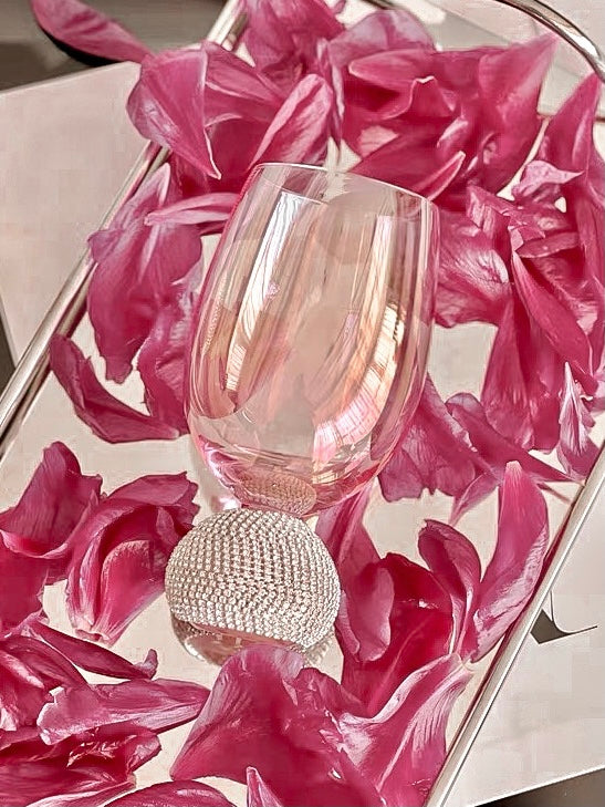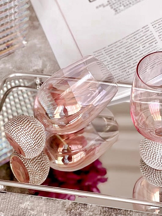 Celeste Diamond Glass Cup in Pink-Handmade Set of 2
