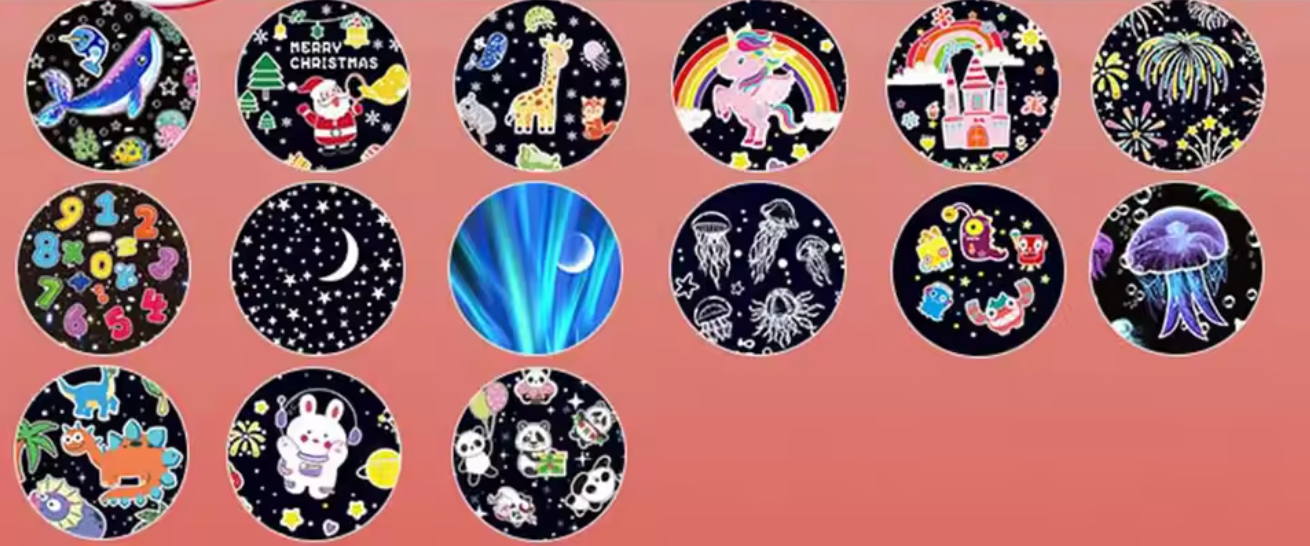 15 Interchangeable Discs – From stars and galaxies to ocean worlds and cute animals, switch between scenes to spark creativity and comfort.